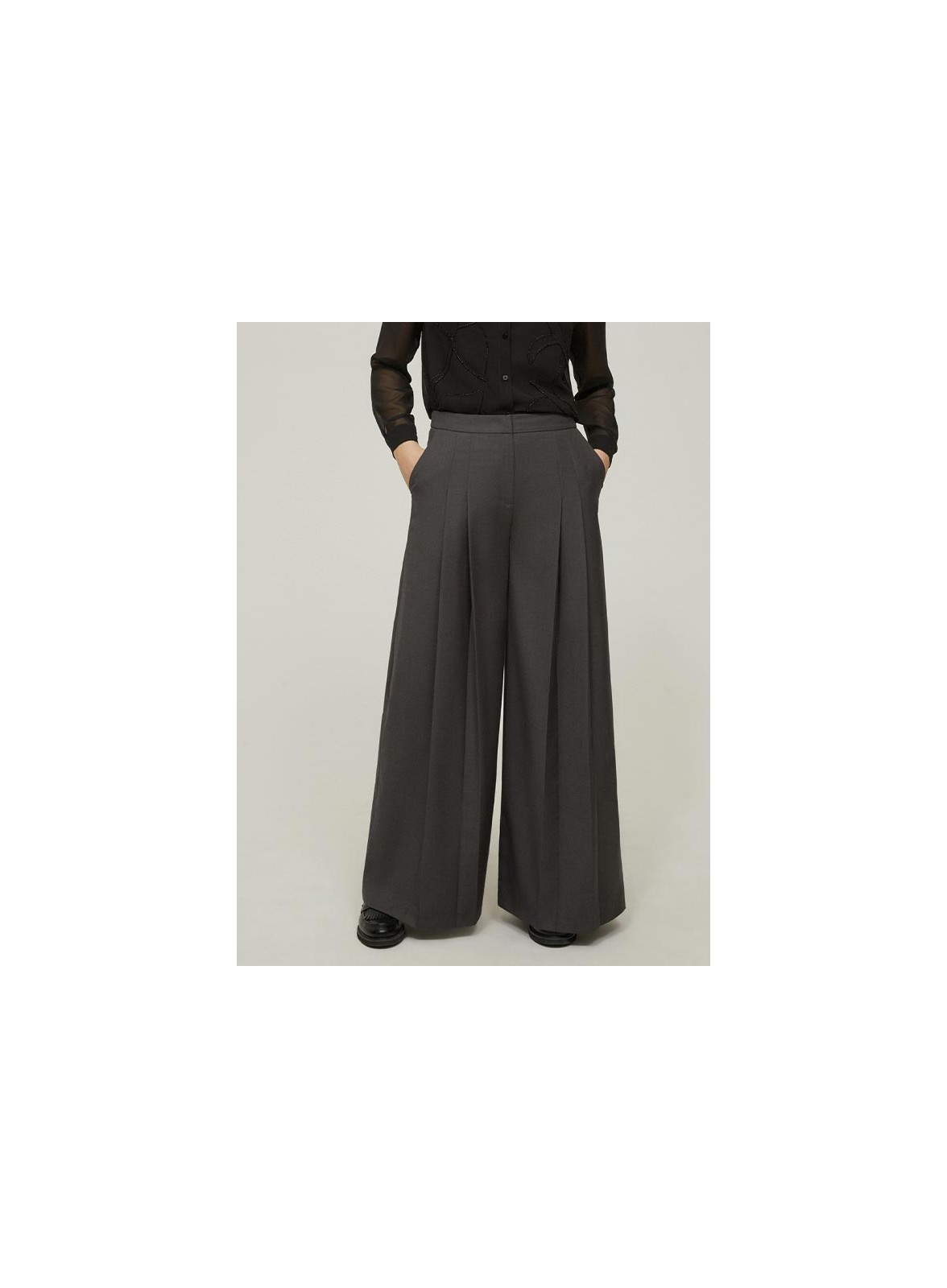 Pantalone firmato PENNYBLACK in tessuto misto viscosa, dalla linea ampia e sofisticata, perfetto per look eleganti e contemporanei.