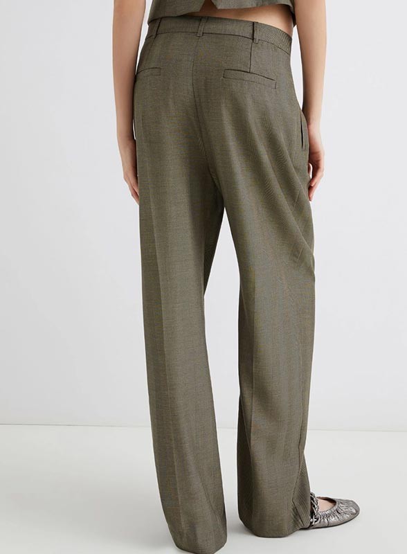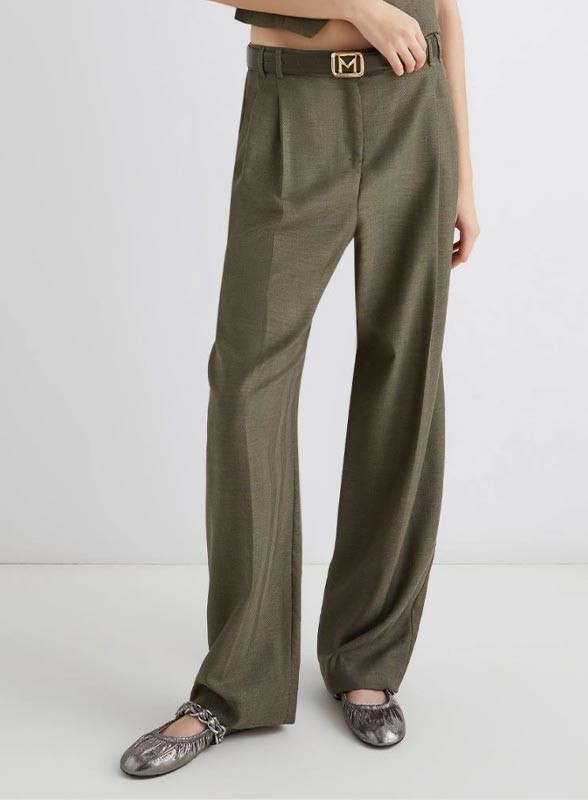 Pantalone firmato MARELLA realizzato in una pregiata saglia di misto lana e viscosa con effetto resca, pensato per una donna che ama l’eleganza discreta e la qualità dei dettagli. Il modello presenta un fit morbido e leggermente incurvato che si stringe al fondo, offrendo una linea raffinata e contemporanea. La chiusura è con gancio a uomo e zip nascosta per un look pulito e sofisticato, mentre la cintura con passanti consente di completare l’outfit con una cintura a contrasto o tono su tono. Le tasche laterali alla francese e quelle posteriori a filetto aggiungono praticità e stile, mentre la piega stirata fronte e retro dona un tocco sartoriale impeccabile.