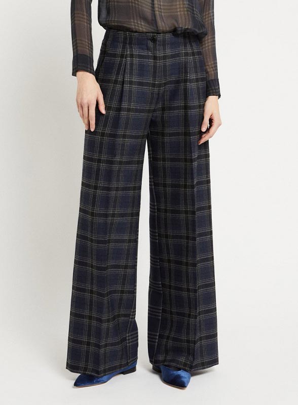Pantalone firmato OTTOD'AME, realizzato con un elegante motivo Glencheck che unisce tradizione sartoriale e stile contemporaneo. Il taglio ampio e la linea fluida donano un’allure sofisticata, mantenendo al tempo stesso un comfort ideale per ogni momento della giornata. Le pieghe precise delineano una silhouette armoniosa e raffinata, perfetta per valorizzare la figura femminile. Questo modello rappresenta un capo versatile, adatto sia ad abbinamenti formali con giacca e camicia, sia a look più casual con maglioni o t-shirt.
