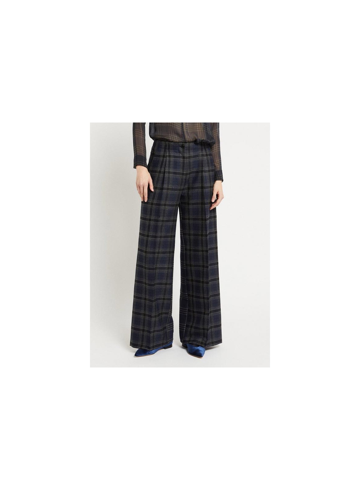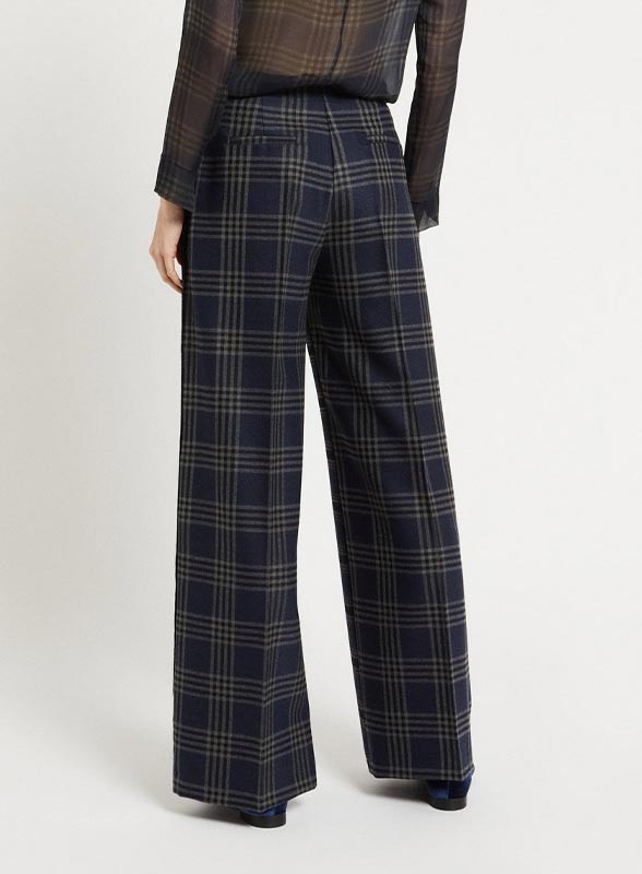Pantalone firmato OTTOD'AME dal classico motivo Glencheck, moderno e confortevole, ideale per un’eleganza quotidiana.