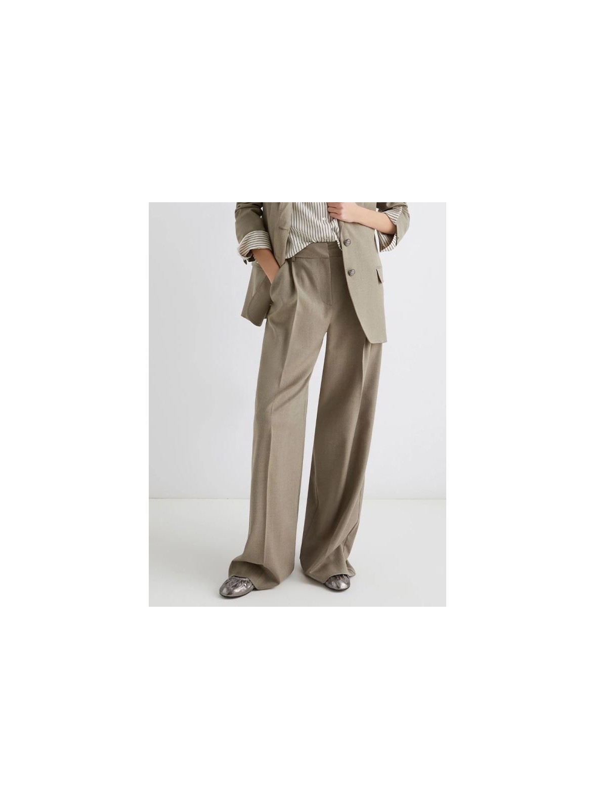 Pantalone firmato MARELLA realizzato in un raffinato misto viscosa stretch con delicato filo di lurex che dona luminosità e carattere al capo. Il modello wide leg valorizza la figura con una linea morbida e fluida, perfetta per un’eleganza contemporanea e sofisticata. La chiusura è con gancio a uomo e zip nascosta per un aspetto pulito e curato. Le tasche laterali alla francese e quelle posteriori a doppio filetto con bottoni aggiungono funzionalità e stile. Il fit regolare assicura comfort e portabilità, rendendo questo pantalone ideale sia per look da giorno che da sera.