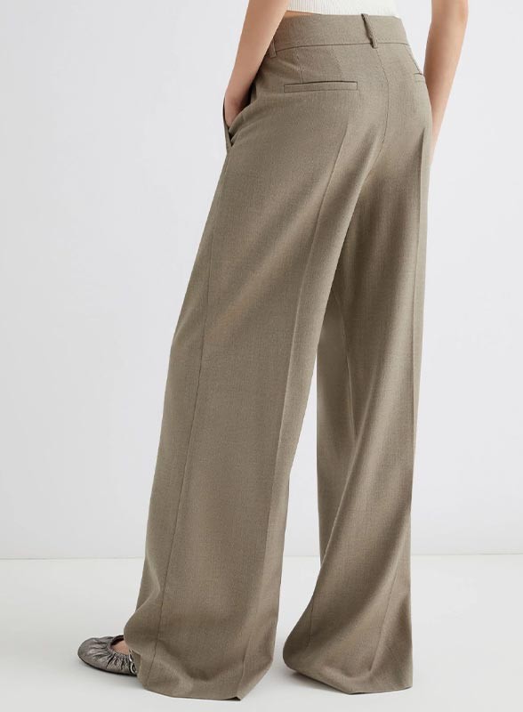 Pantalone firmato MARELLA in misto viscosa stretch con filo di lurex. Modello wide leg elegante, fit regolare e chiusura con gancio a uomo.