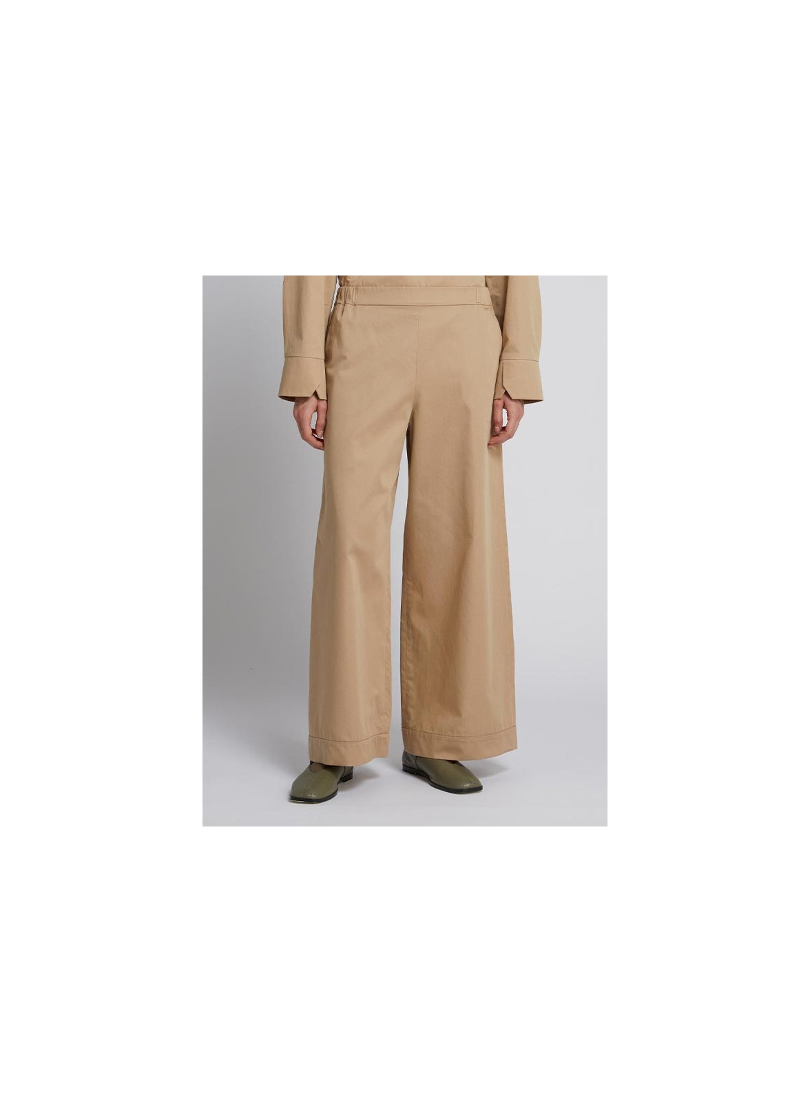 Pantalone in cotone color piombo, gamba ampia e vita elasticizzata, vestibilità morbida, firmato MM MAXMARA.