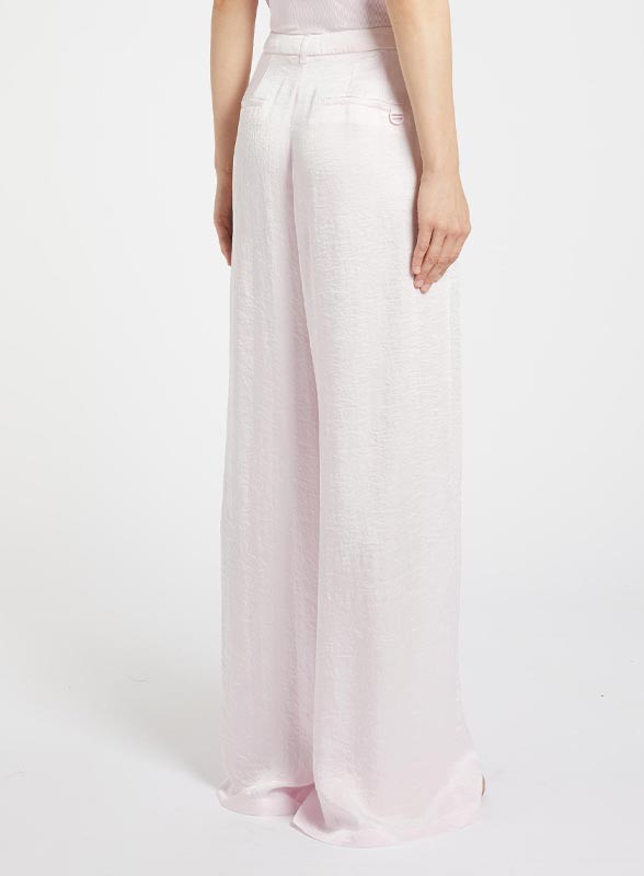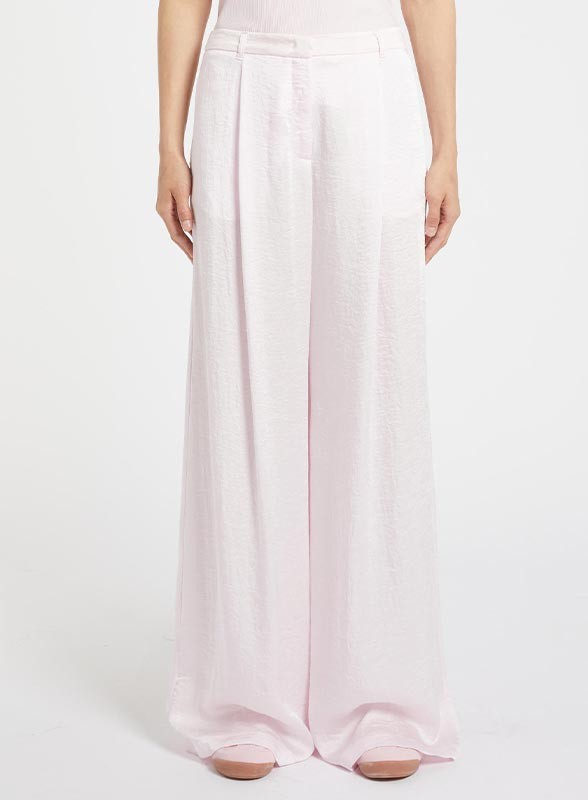 Pantalone ampio in twill crinkle firmato MARELLA, linea morbida e chiusura laterale nascosta, eleganza contemporanea.