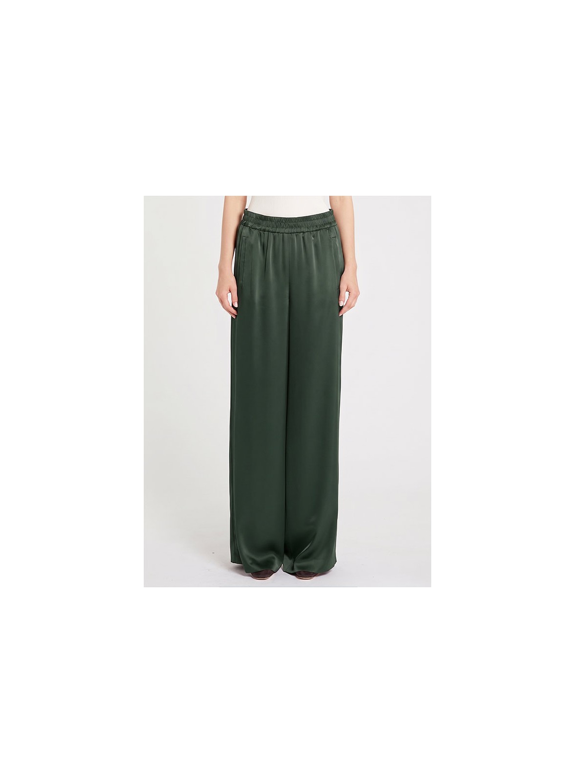 Pantalone dritto sulla gamba in raffinato double satin firmato MARELLA, caratterizzato da un fit regolare che valorizza la silhouette con eleganza contemporanea. L’inserto elastico in vita assicura comfort e vestibilità impeccabile, mentre le tasche a filetto lungo i fianchi e la tasca singola posteriore aggiungono funzionalità e stile. Gli inserti in gros grain lungo i lati donano al capo un tocco distintivo e lo rendono estremamente versatile, perfetto sia per look formali che per abbinamenti più casual.