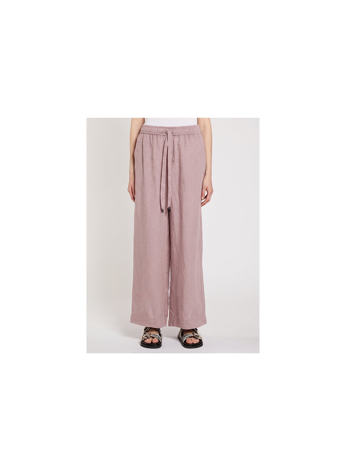 Pantalone a palazzo dalla linea fluida firmato MARELLA in lino stretch con tasche laterali e piega stirata. Eleganza moderna.