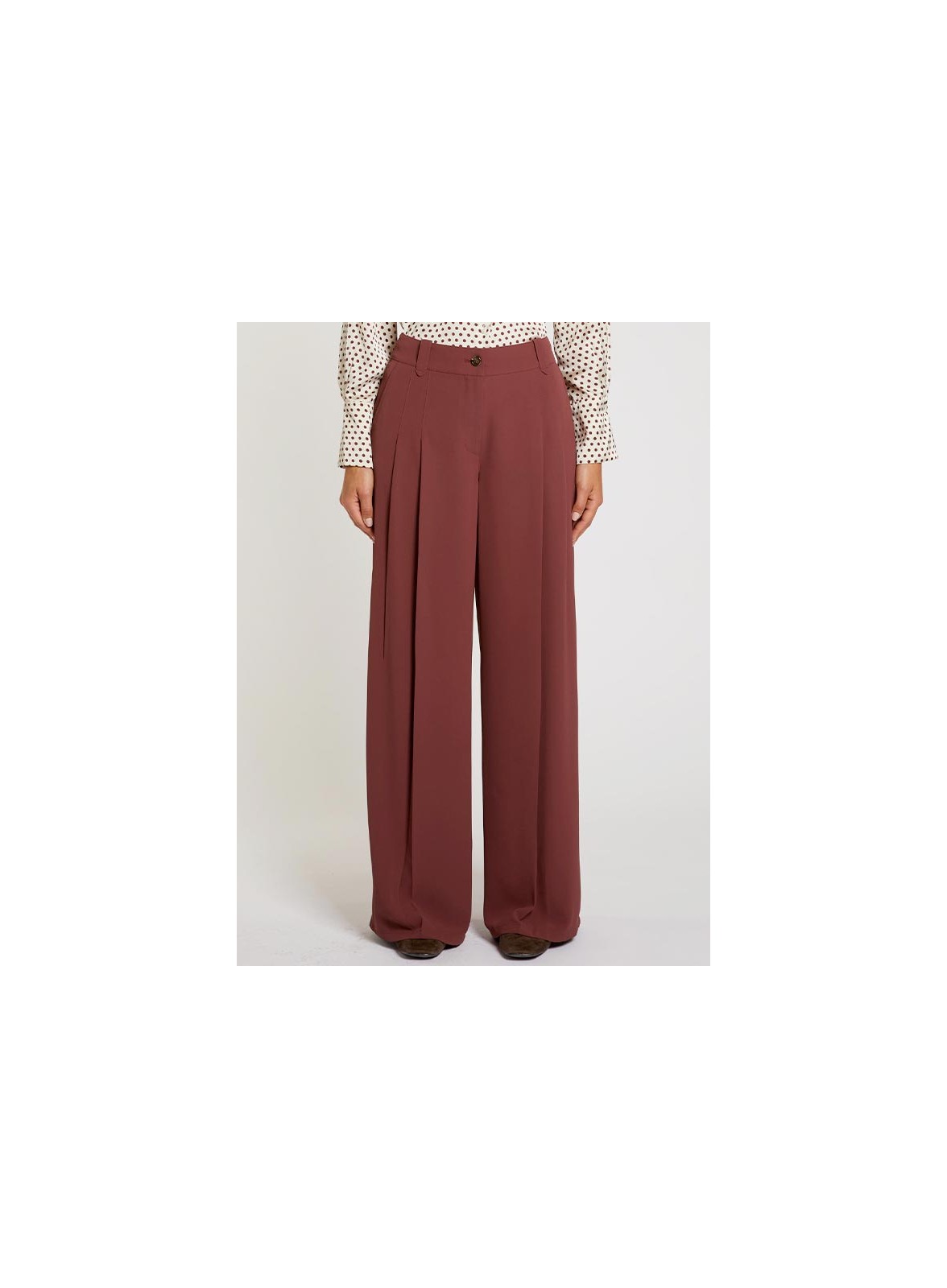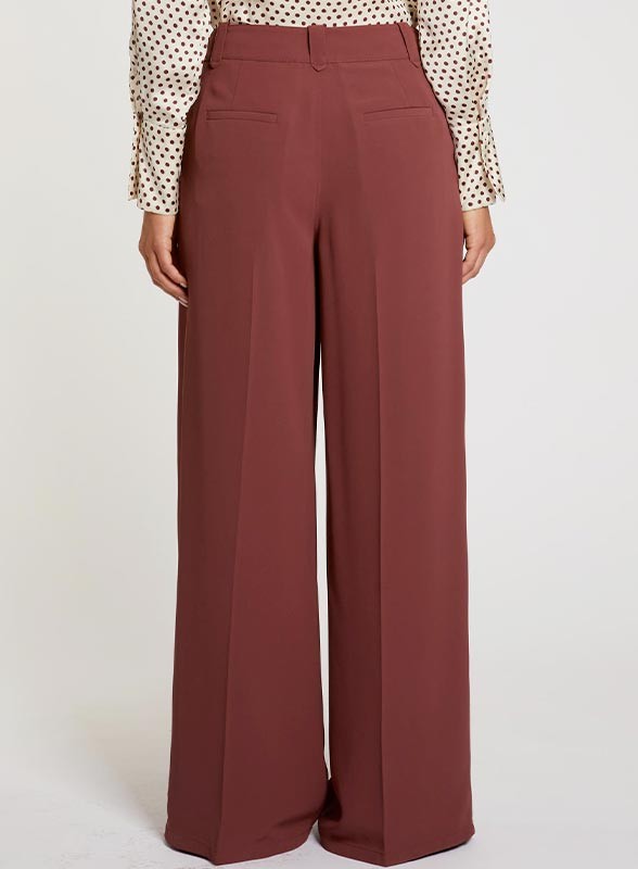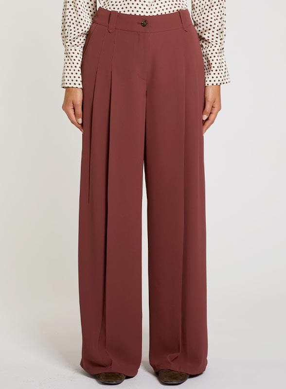Pantalone firmato PENNYBLACK caratterizzato da linee ampie e fluide, pensato per reinterpretare lo stile sartoriale classico in chiave contemporanea. Il design è arricchito da pieghe morbide che donano movimento e leggerezza alla silhouette, mentre la gamba diritta e il fit ampio assicurano comfort e versatilità. La vita regolare con passanti, le doppie pieghe e le tasche alla francese sul davanti aggiungono un tocco elegante e funzionale. Sul retro, le tasche a filo e la piega stirata completano il capo con un dettaglio raffinato. La chiusura con zip nascosta e bottone garantisce una vestibilità pratica e pulita.