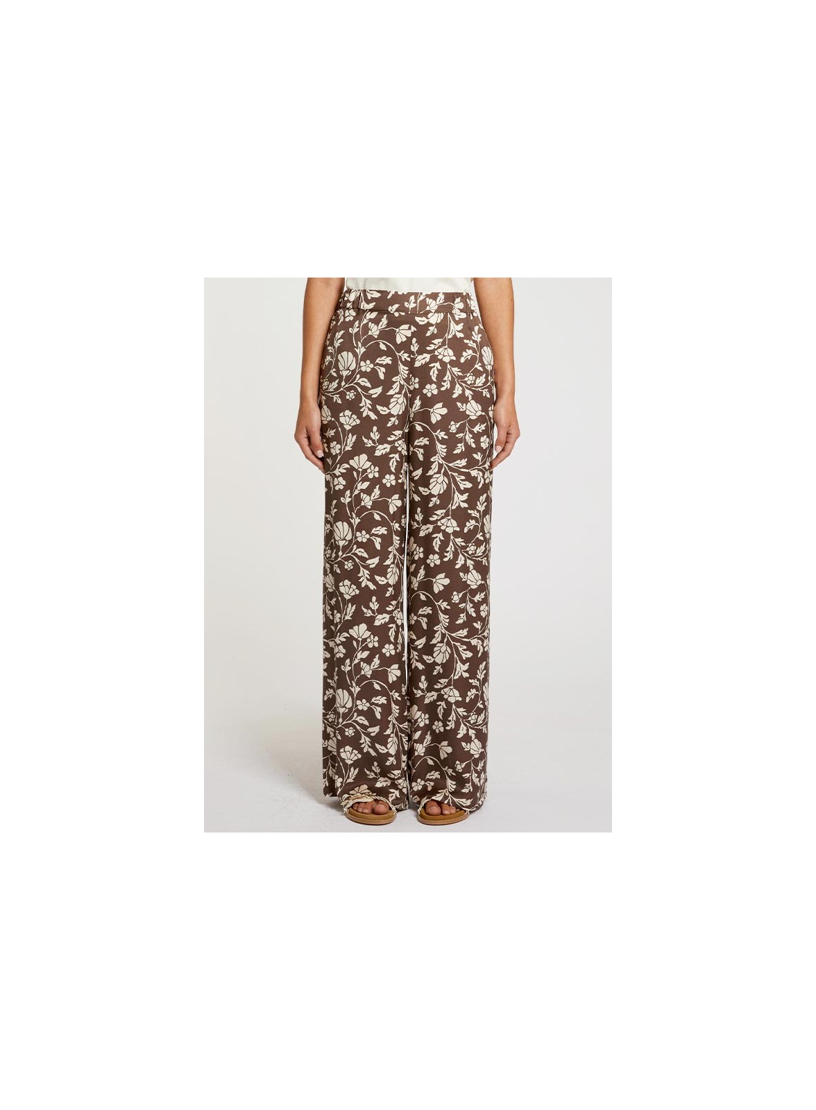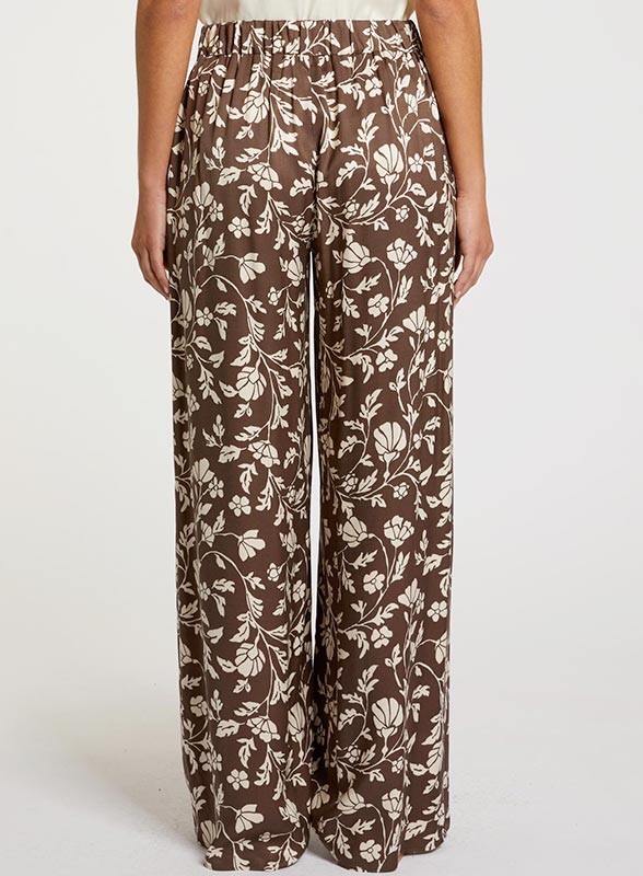 Pantalone firmato PENNYBLACK in twill di viscosa con stampa botanica, fit ampio e linee fluide per uno stile elegante e contemporaneo.