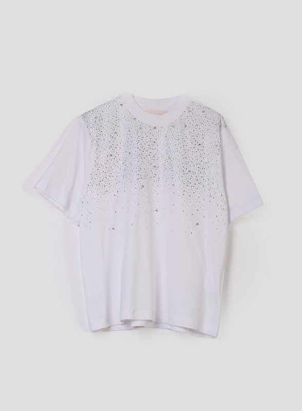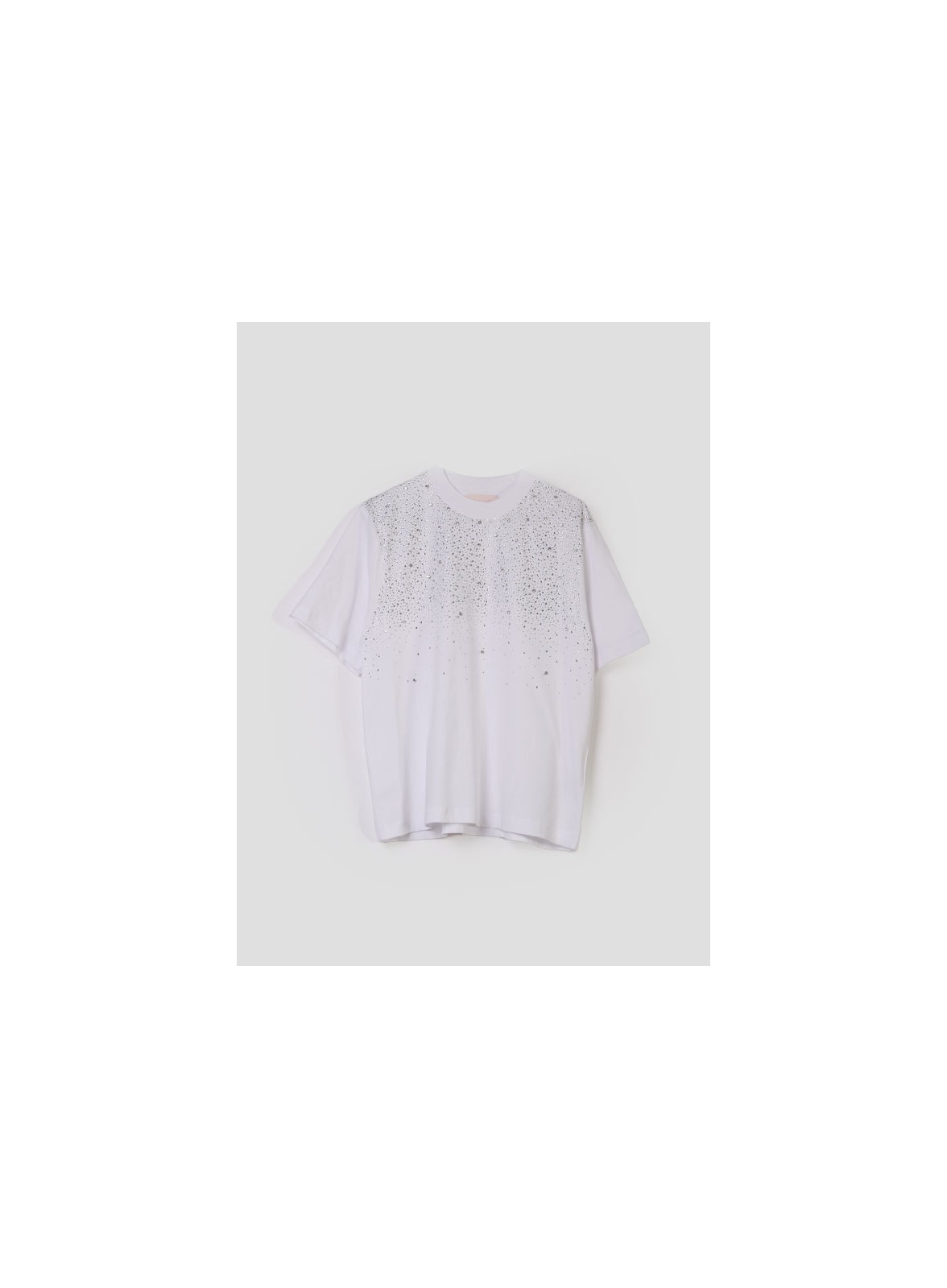 T-shirt firmata IBLUES in cotone, dal fit ampio e morbido con dettagli preziosi e strass.