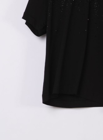 T-shirt firmata IBLUES realizzata in morbido jersey di cotone, dal fit ampio e comodo, ideale per uno stile casual ma raffinato. Presenta scollo tondo e maniche corte, con applicazioni e strass sul davanti che rendono il capo unico e prezioso. Classica nel taglio, preziosa nei dettagli, questa t-shirt unisce comfort e stile firmato IBLUES.