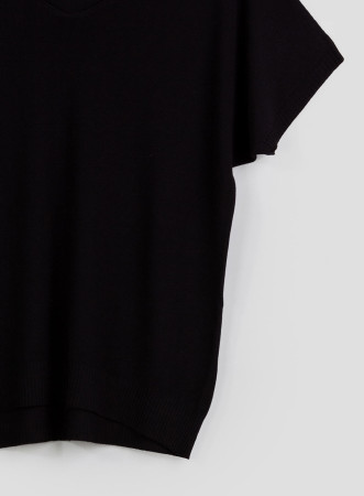 Maglia con maniche corte, scollo a V e profili a costine sottili. Il modello presenta fit regular, morbido e stretch. L'abbigliamento firmato Kontatto è pensato per soddisfare ogni esigenza della donna moderna. Al passo con le tendenze, il brand italiano propone capi pratici e giovanili.